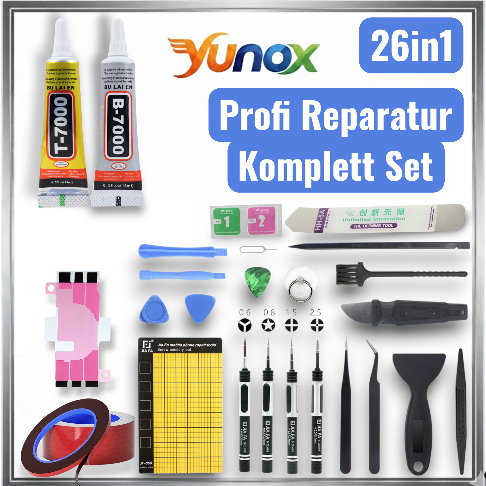 JIAFA Profi Reparatur Set iPhone Samsung Display Akku Werkzeug B/T7000 Kleber