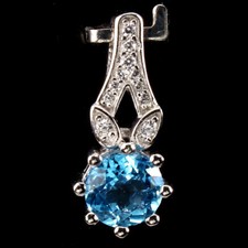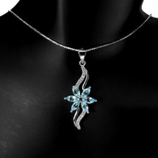 Edelstein Art: Natürliche Swiss Blautopas,mit Microsetting Zirkonia Kristalle die aus einer Pavé Fassung heraus funkeln. Hochwertiger EDELSTEIN anhänger aus rhodiniertem 925 Sterling Silber in Juwelierqualität.