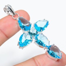 Swiss Blautopas Anhänger 925 Sterling silber Rose-gold Damen Frauen Edelsteine