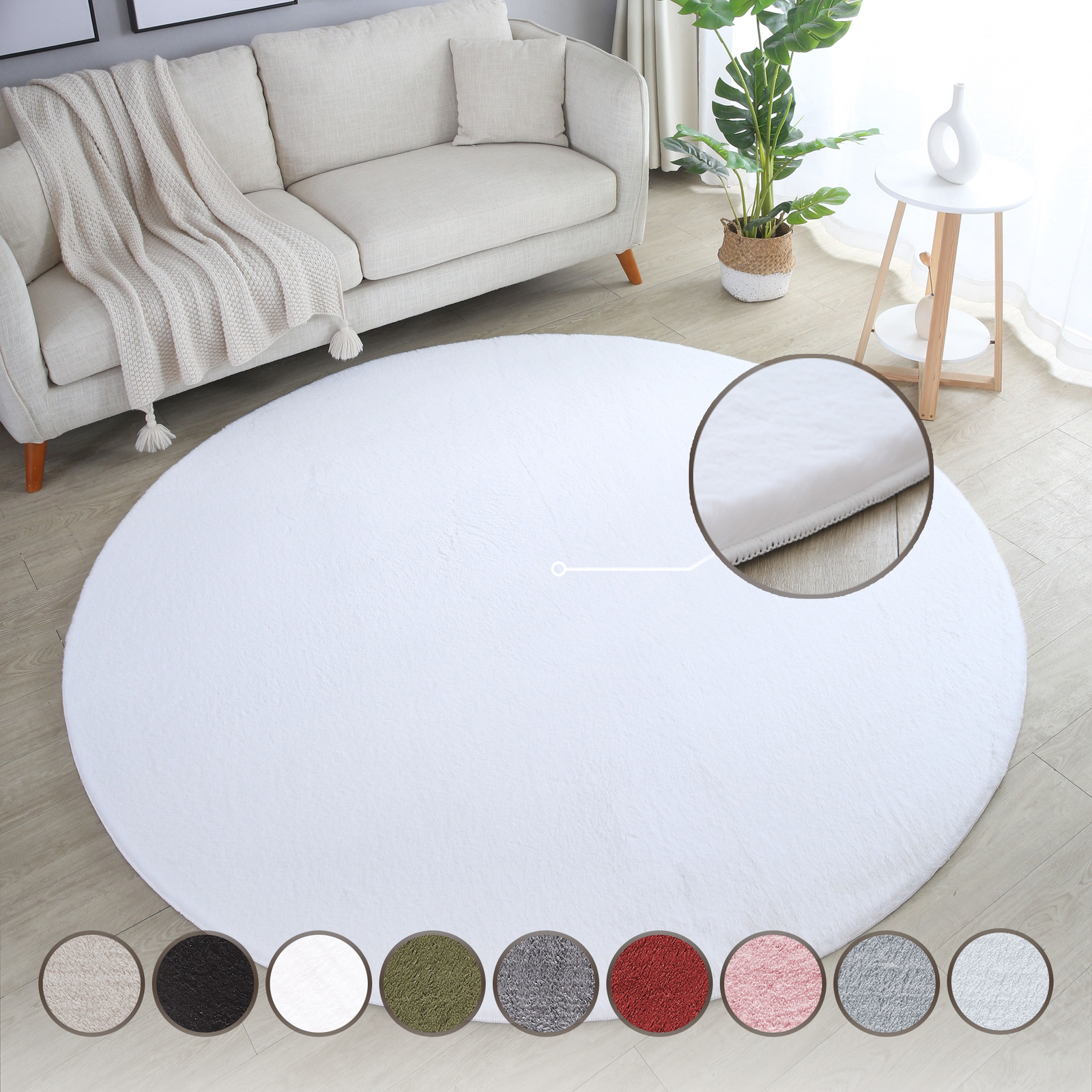 Shaggy Rund Teppich Wohnzimmer Einfarbig Hochflor Weich Flauschiger Rabbit optik