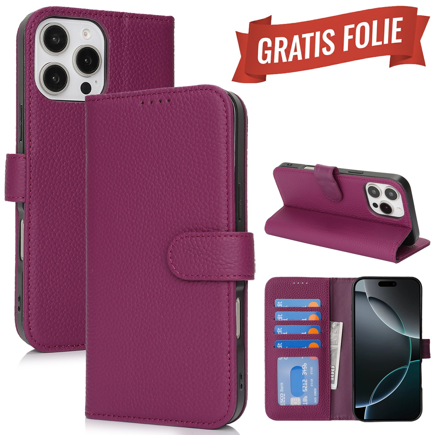 Echt Lederhülle für iPhone 15 Pro Max 15 Plus Hülle Klapphülle Flip Case Etui