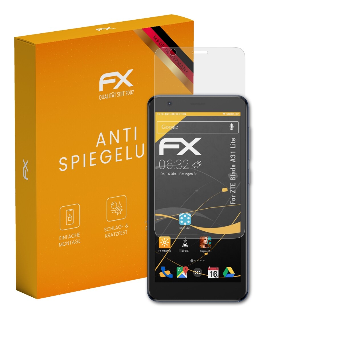Entspiegelnd und stoßdämpfend: atFoliX 3 x FX-Antireflex Schutzfolie für ZTE Blade A31 Lite - Made in Germany! Verkauf und Versand durch @FoliX - Original und direkt vom Hersteller! Montage Zubehör inklusive: Reinigungstuch, Montagewerkzeug (Rakel), Link zur mehrsprachigen, bebilderten Montageanleitung (inkl. Montagevideo).