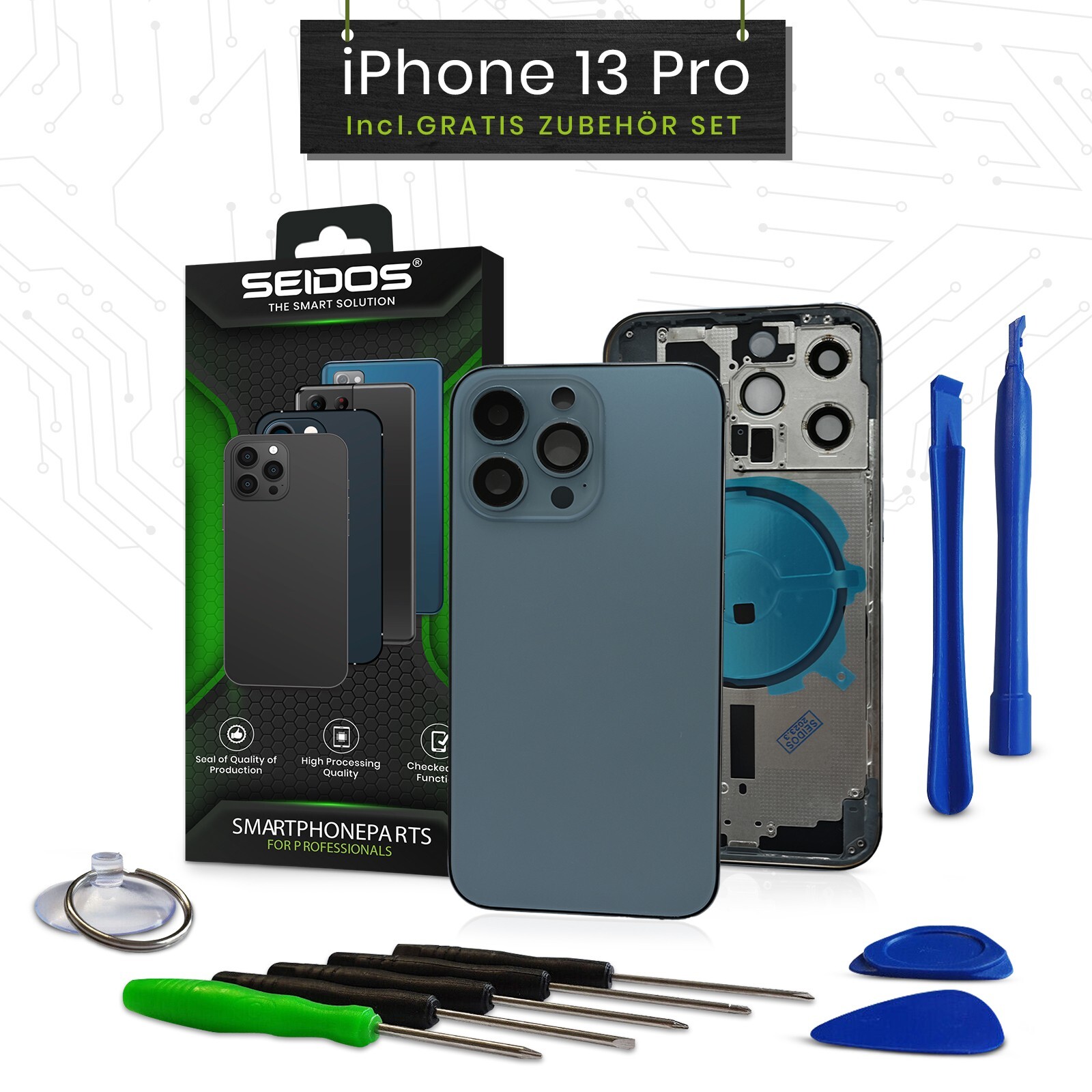 Backcover für iPhone 13 Pro Blau Gehäuse Rahmen Rückseite Frame Housing NEU