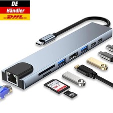 USB-C Hub 8-IN-1 Adapter 4K HDMI USB 3.0 LAN Ethernet Kartenleser oder 4-IN-1