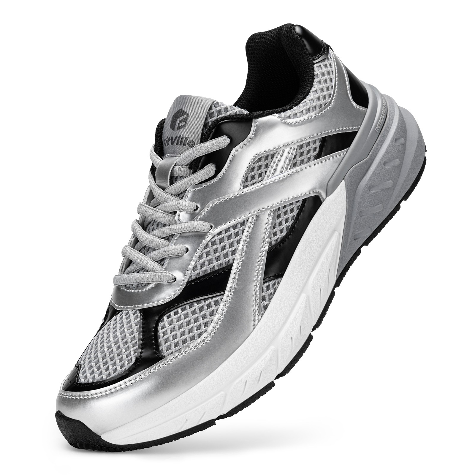 Schuhe sind Brücken, die uns befähigen, unsere Ziele zu erreichen. ▶ Über FitVille. 4-in-1-Multifunktionssohle: Die verbesserte 4-in-1-Verbundsohle bietet eine um 20-30 % bessere Dämpfung als herkömmliche Sportschuhe, absorbiert Stöße effektiv und entlastet Knie und Knöchel.