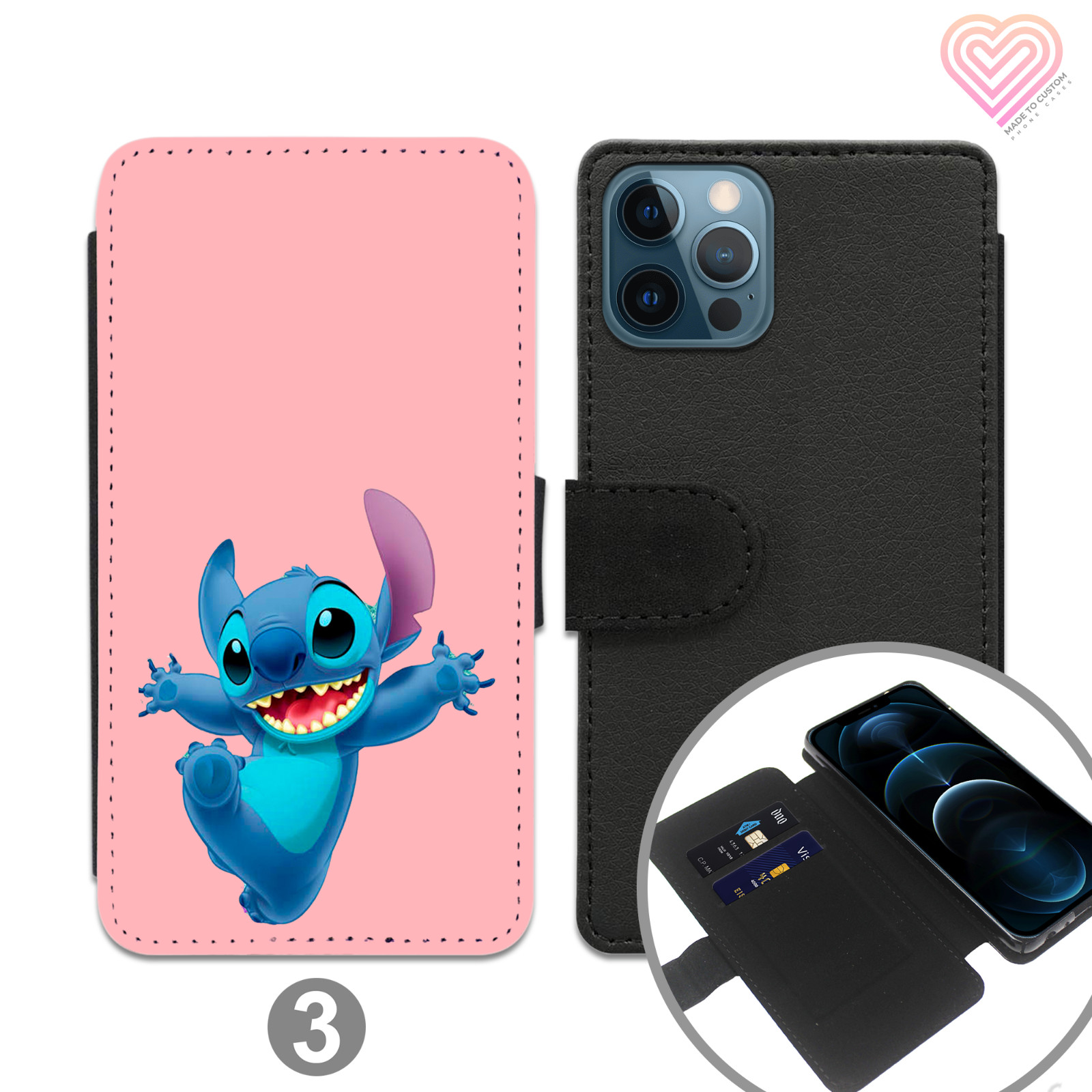 Stitch Wallet Case Flip Cover für Apple iPhone 15 Samsung Galaxy S24 Modelle