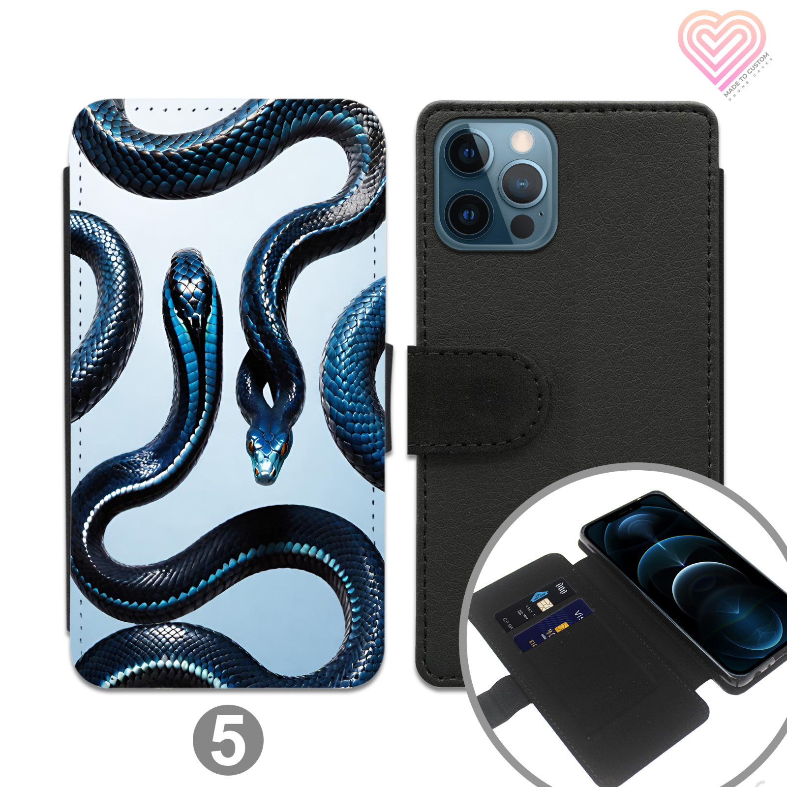 Snake Phone Case Wallet Leather Flip Cover – Made To Custom. 🐍 Add sophistication to your phone with our Snake Wallet Leather Flip Case. Features card slots, magnetic clasp and stand function — the ideal blend of luxury and practicality.
