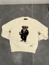 Originaler Polo Ralph Lauren Strickpullover mit dem legendären Bear-Motiv. Der Pullover ist in einem klassischen Dunkelblau gehalten und zeigt den detailreich gestickten Bären mit USA-Flagge auf der Vorderseite.
