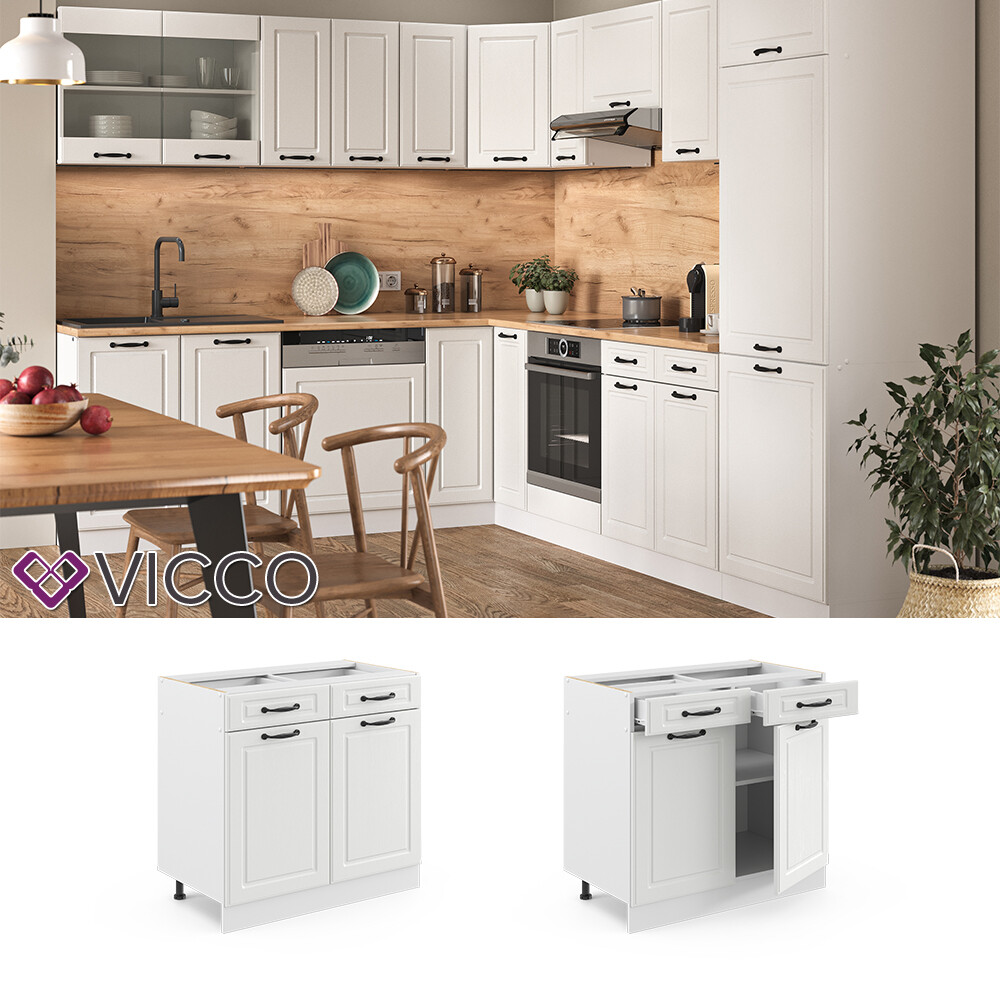 Schubunterschrank 80 cm Küchenschrank Küchenzeile Landhaus R-Line Vicco