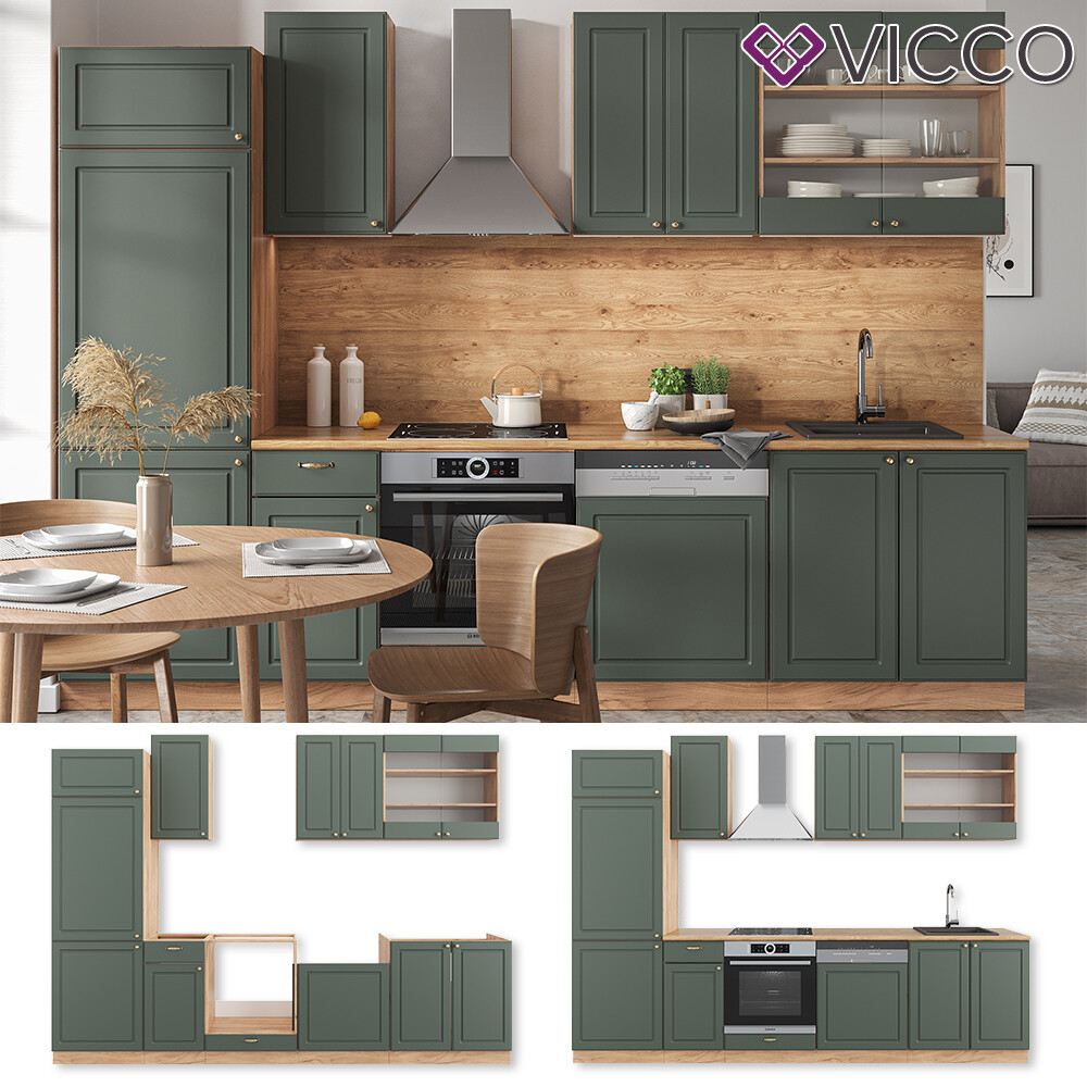 Küchenzeile Küchenblock Einbauküche Fame-Line Landhaus Eiche Anthrazit 300 Vicco