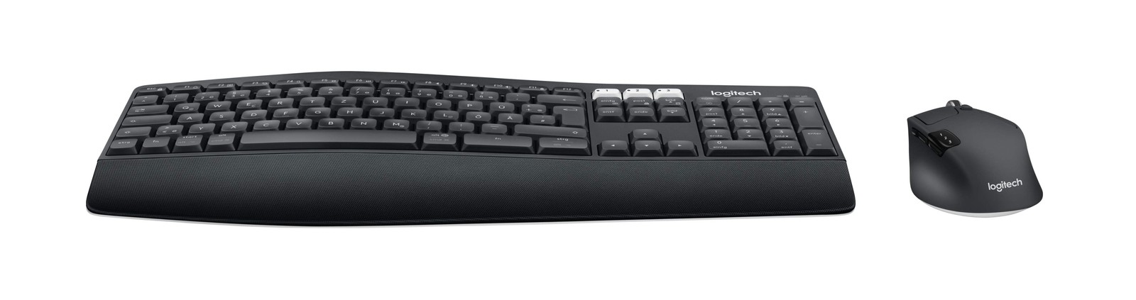 Keyboard & Mouse Logitech Wireless Combo MK850 black (DE) (920-008221) Das Logitech MK850 Performance Set kombiniert eine kabellose Tastatur in Standardgröße mit einer ergonomischen Maus. Lange Batterielaufzeit: Tastatur mit bis zu 36 Monaten, Maus mit bis zu 24 Monaten Batteriebetrieb für unterbrechungsfreies Arbeiten.