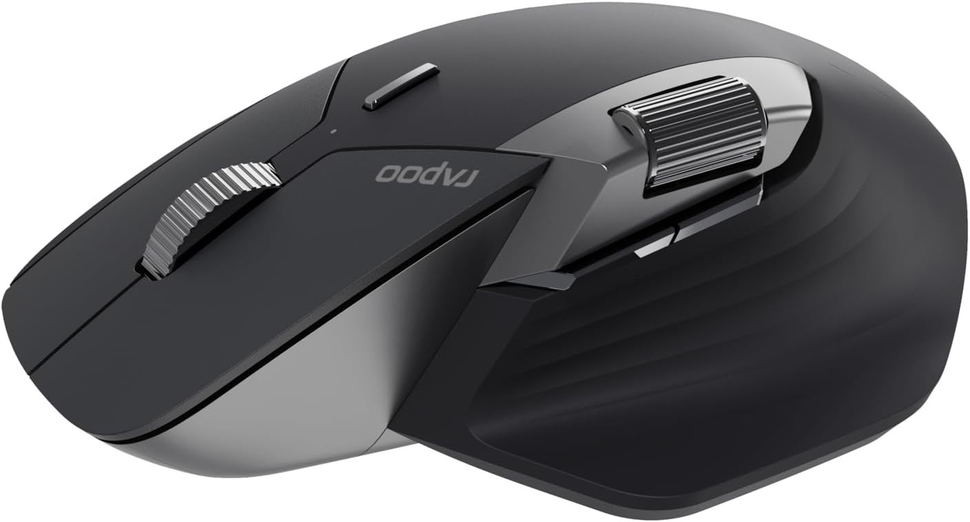 Rapoo MT760M kabellose Maus wireless Mouse 4000 DPI Sensor umweltfreundlicher wiederaufladbarer Akku ergonomisch PC & Mac - Grauschwarz. - Rapoo MT760M. Ergonomisches PC Maus Design für Rechtshänder, 2 Mausräder für horizintales und vertikales Scrollen, perfekt für unterwegs und auf Reisen.