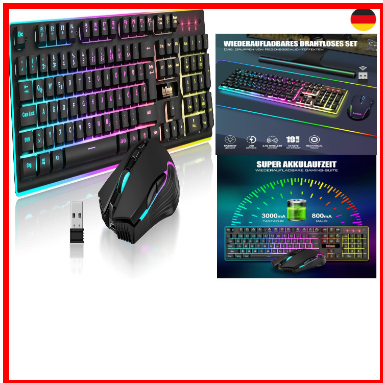 RedThunder K10 Kabelloses Gaming Tastatur und Maus Set, QWERTZ DE Layout, 300...