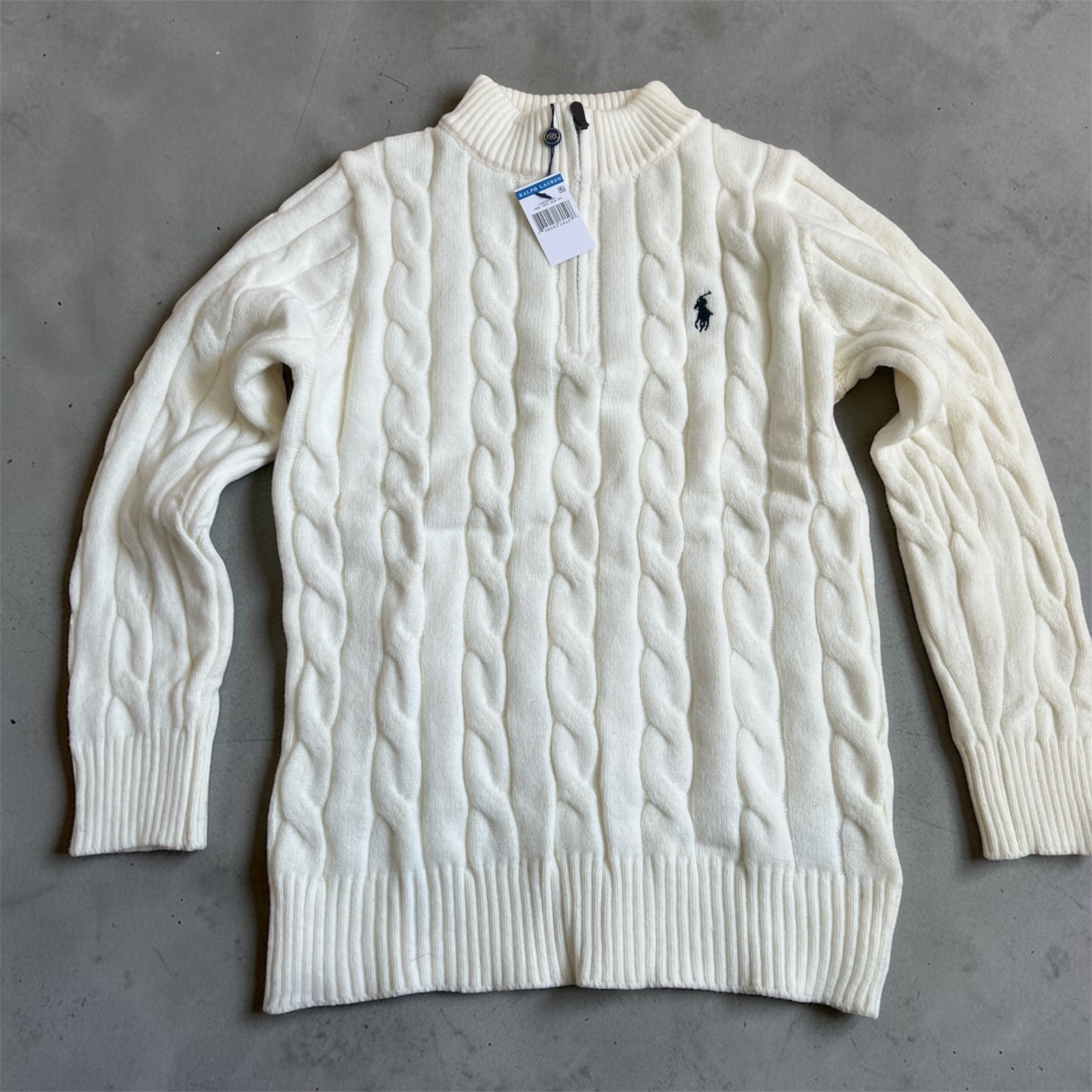 Polo Ralph Lauren Cable-Knit Quarter-Zip Pullover Creme NEU mit Etiketten M