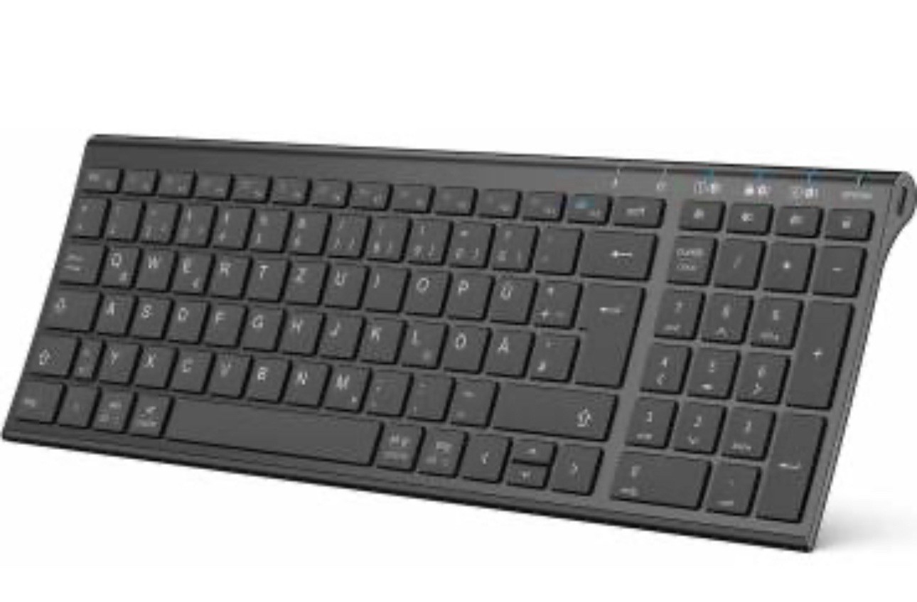 Erleben Sie höchsten Schreibkomfort mit der iClever BK10 Bluetooth Tastatur, perfekt für Vielschreiber und Technik-Enthusiasten. Diese ultraslimme, wiederaufladbare Tastatur bietet eine kabellose Konnektivität, die Ihnen maximale Bewegungsfreiheit und eine reibungslose, deutsche QWERTZ-Tastaturfunktion garantiert. Dank der Bluetooth-Technologie kann sie mühelos mit Ihren Geräten verbunden werden und ist somit der ideale Begleiter für produktives Arbeiten überall.