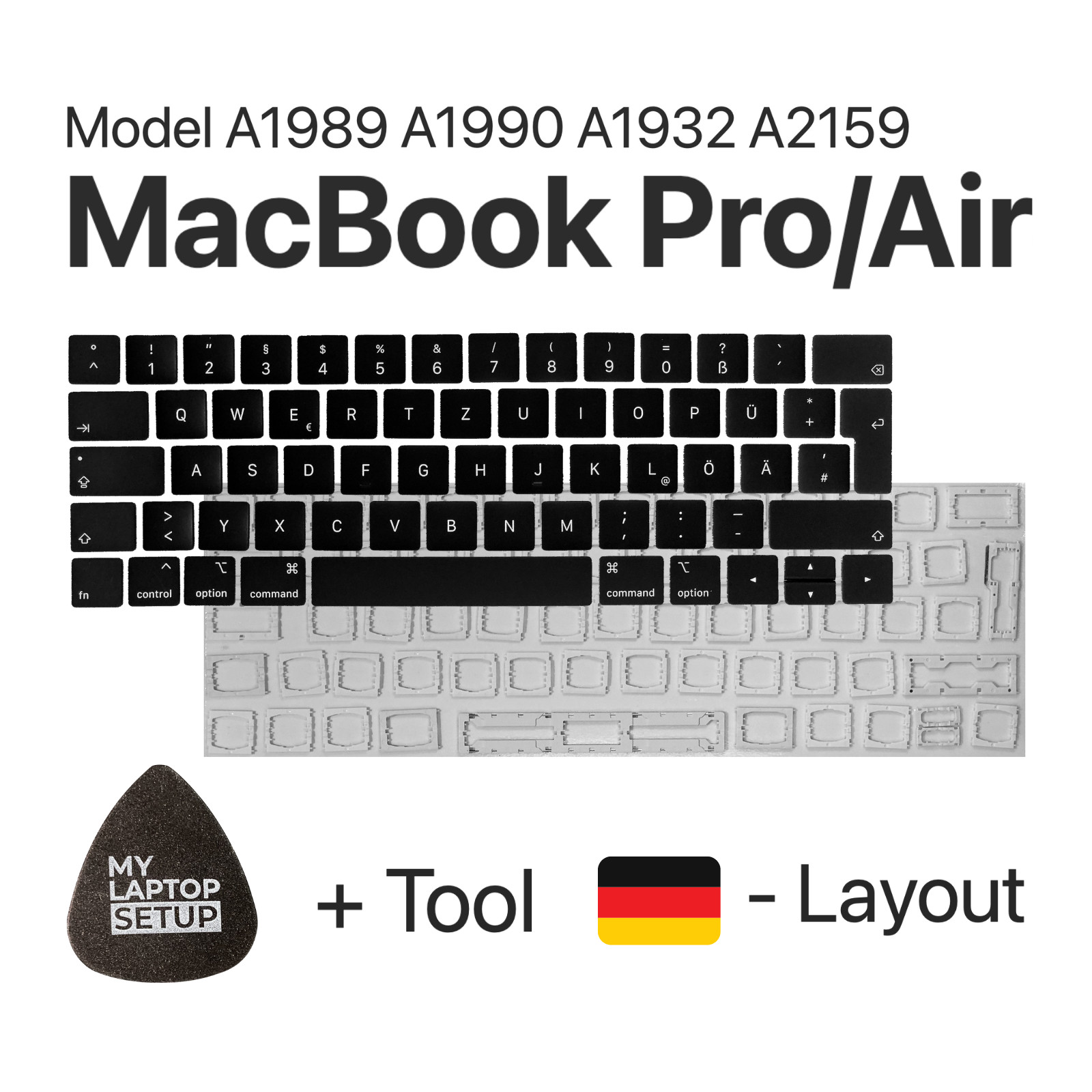 A1989/A1990/A2159 Tasten deutsches Layout. A1989/A1990/A2159 Scharniere deutsches Layout. MacBook Pro 13" 2019 A2159. MacBook Air 13" 2018-2019 A1932. Taste(n) + Scharnier(e). Nur Scharnier(e). MacBook Pro 13" 2018-2019 A1989.