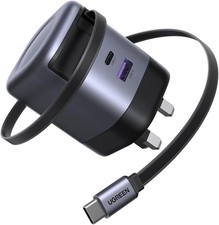 UGREEN Nexode USB C Einziehbares Ladegerät 65W GaN Netzteil mit Ladekabel 3-Port
