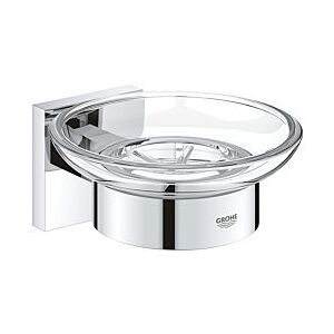Grohe Start Cube Seifenschale mit Halter 41096DC0 Supersteel Material: Glas / Metall verdeckte Befestigung GROHE Long-Life Oberfläche geeignet zum Bohren (inklusive Schrauben und Dübel) oder Kleben (bitte Kleber GROHE QuickGlue A1 41127000 separat bestellen)