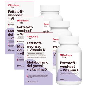 Redcare Vita Fettstoffwechsel + Vitamin D Möchten Sie Ihren Stoffwechsel1,2 und zugleich ihre Gewichtsabnahme3 unterstützen? Dann sind die Redcare Vita Fettstoffwechsel + Vitamin D Kapseln genau die richtige Wahl – die einzigartige Formel kombiniert das Beste zum Stoffwechsel-Support: Mit Cholin & Glucomannan aus der Konjakwurzel Zink und Eisen sowie den Spurenelementen Mangan und Molybdän Aus der Pflanzenwelt: Gingerole aus Ingwer Plus B-Vitamine wie B6, B12 und Folsäure Zusätzlich Hochdosiertes Vitamin D So unterstützt Redcare Vita Fettstoffwechsel + Vitamin D besonders den Stoffwechsel sowie den Gewichtsverlust: 1Cholin trägt zu einem normalen Fettstoffwechsel und einer normalen Leberfunktion bei. 2Zink trägt zu einem normalen Fettsäurestoffwechsel sowie einem normalen Stoffwechsel von Makronährstoffen bei. 3Glucomannan trägt im Rahmen einer kalorienarmen Ernährung zu Gewichtsverlust bei. (Die positive Wirkung stellt sich bei einer täglichen Aufnahme von 3 g Glucomannan in drei Portionen à 1 g in Verbindung mit 1 – 2 Gläsern Wasser vor den Mahlzeiten und im Rahmen einer kalorienarmen Ernährung ein.) Vitamin D und Calcium trägt zur Erhaltung einer normalen Muskelfunktion und normaler Knochen bei. Die Einnahme ist leicht: Einfach dreimal täglich zwei Kapseln täglich mit einem großen Glas Wasser am besten vor einer Mahlzeit einnehmen. Für eine optimale Wirkung achten Sie auf eine kalorienarme Ernährung. Eine Packung enthält 180 Kapseln und reicht für einen Monat. Pflichtangaben Zutaten: Glucomannan reiches Konjakwurzelpulver (Amorphophallus konjac, Sulphite, China), Magnesiumcarbonat, Cholintartrate (mikroverkapselt), Überzugsmittel: Hydroxypropylmethylcellulose, Eisensulfat (mikroverkapselt), Calcium-L-Ascorbat, Menachinon-7, Ingwerwurzelstockextrakt (Zingiber officinale), Zinkcitrat, Natriummolybdat, Cholecalciferol, Cyanocobalamin, Mangangluconat, Pyridoxinhydrochlorid, (6S)-5-Methyltetrahydrofolsäure, Glucosaminsalz Nährwerte: Nutrient Amount (6 Kapseln)4 % Daily Value (NRV)5 Vitamin D20 μg400 % Vitamin K50 μg67 % Vitamin C66 mg83 % Vitamin B61,2 mg86 % Folsäure48 μg24 % Vitamin B126 μg240 % Magnesium60 mg16 % Eisen12 mg86 % Zink5,0 mg50 % Mangan0,5 mg25 % Molybdän50 μg100 % Cholin82,5 mg– Gingerole1,2 mg– Glucomannan3,0 g– 4 angegebene tägliche Verzehrmenge 5 Anteil an der Nährstoffreferenzmenge Verzehrempfehlung: Im Rahmen einer kalorienarmen Ernährung täglich 3x jeweils 2 Kapseln vor den Mahlzeiten mit je 200 ml Wasser einnehmen. Hinweis: Die angegebene empfohlene Tagesmenge darf nicht überschritten werden. Dieses Produkt ist kein Ersatz für eine ausgewogene, abwechslungsreiche Ernährung und eine gesunde Lebensweise. Produkt darf nicht von Schwangeren, Kindern und Jugendlichen unter 18 Jahren verzehrt werden. Patient*innen, die Antikoagulantien einnehmen, sollten vor der Einnahme von Vitamin K-Präparaten ihre Ärztin oder ihren Arzt konsultieren. Bei unzureichender Flüssigkeitszufuhr besteht bei Verbraucher*innen mit Schluckbeschwerden...