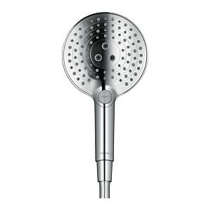 hansgrohe Raindance Select Handbrause Artikelnummer: 26530000 chrom Brausekopfgröße: 125 mm 3 Strahlarten: Rain, RainAir, WhirlAir komfortable Strahlartenumstellung durch Select-Taste mit AirPower:volle, weiche Tropfen durch mit Luft angereichertes Wasser mit XXL Performance: großer Brausekopf mit optimaler Wasserverteilung mit QuickClean: schnelles Entfernen von Kalkablagerungen durch einfaches Abwischen der Silikondüsen mit der Hand maximale Durchflussmenge (bei 3 bar): 16 l/min mit innenliegender Wasserführung ausspülbares Schmutzfangsieb Anschlussgewinde G ½ Anschlussgröße: DN15 für Durchlauferhitzer geeignet
