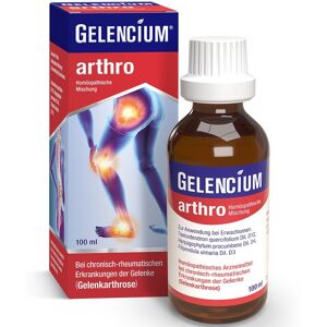GELENCIUM® arthro Zur gezielten Behandlung von Gelenkarthrose Stärkt die Gelenkknorpel Lindert die typischen Anlauf- und Belastungsschmerzen Unterstützt die Gelenkfunktion Was ist GELENCIUM® arthro und wofür wird es verwendet? GELENCIUM® arthro ist ein natürliches Kombinations-Arzneimittel aus drei Arzneipflanzen zur gezielten Behandlung von Gelenkarthrose. Wie wirkt GELENCIUM® arthro? Mehr als 15 Millionen Deutsche leiden ab der Mitte des Lebens an chronischen Gelenkschmerzen, meist in Knie, Hüfte, Schulter oder Händen. In 9 von 10 Fällen ist Arthrose die Ursache. GELENCIUM® arthro kann bei allen Formen von Gelenkverschleiß helfen. Das moderne Arzneimittel wurde zur gezielten natürlichen Behandlung von Arthrose in allen Gelenken zugelassen. Das Geheimnis von GELENCIUM® arthro ist der moderne Arthro-3fach-Komplex, der in den betroffenen Gelenken eine einzigartige Mehrfachwirkung entfalten kann: Stärkt die Gelenkknorpel Lindert die typischen Anlauf- und Belastungsschmerzen Unterstützt die Gelenkfunktion GELENCIUM® arthro hat keine bekannten Neben- oder Wechselwirkungen. Das Naturarzneimittel ist daher auch ideal als Zusatztherapie geeignet (z.B. gemeinsam mit Schmerzgels, Salben, Tabletten). Was steckt in GELENCIUM® arthro? In GELENCIUM® arthro wurden drei bekannte und hochwirksame Arzneipflanzen gegen Gelenkarthrose gezielt miteinander kombiniert und in Tropfenform aufbereitet. Die Wirkungen der gut verträglichen Pflanzenstoffe wurden in mehr als 10 medizinischen Studien umfangreich untersucht und bestens dokumentiert. In GELENCIUM® arthro werden die natürlichen Arzneistoffe unter modernsten Laborbedingungen kombiniert und in besonderen Dilutionen entsprechend des deutschen Arzneimittelbuchs aufbereitet. Folgende Heilpflanzen gegen Gelenkarthrose sind enthalten: Filipendula ulmaria (Echtes Mädesüß) Toxicodendron quercifolium (Eichenblättriger Giftsumach) Harpagophytum procumbens (Afrikanische Teufelskralle) Wie ist GELENCIUM® arthro anzuwenden? GELENCIUM® arthro wird am besten mit etwas Wasser eingenommen und eine Zeitlang im Mund behalten. Die Einnahme sollte vor den Mahlzeiten erfolgen. Erwachsene nehmen bei akuten Beschwerden 6-mal täglich 5 Tropfen, bei Besserung der Beschwerden ist die Häufigkeit der Anwendung zu reduzieren. Die Dauer der Anwendung ist nicht begrenzt. Bitte beachten Sie auch die Packungsbeilage und fragen Sie Ihren Arzt oder Apotheker. GELENCIUM® arthro darf nicht eingenommen werden von Kindern und Jugendlichen unter 18 Jahren, in der Schwangerschaft und Stillzeit, bei Alkoholkrankheit sowie bei Allergien gegen Mädesüß oder Teufelskralle. Vor dauerhafter Arzneimitteleinnahme sollte auch bei natürlichen Medikamenten eine ärztliche Abklärung der Arthrose-Beschwerden erfolgen. GELENCIUM® arthro ist rezeptfrei erhältlich. Hinweise für Allergiker: GELENCIUM® arthro ist vegan, glutenfrei, laktosefrei, fructosefrei und sojafrei. GELENCIUM® arthro enthält Alkohol. Pflichttext: Gelencium® arthro. Wirkstoffe: Toxicodendron...