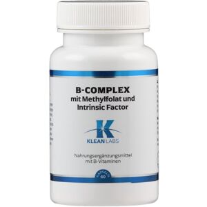 Nahrungsergänzungsmittel sind kein Ersatz für eine abwechslungsreiche und ausgewogene Ernährung und eine gesunde Lebensweise.Der hochdosierte Vitamin-B-Komplex mit Methylfolat und Intrinsic Factor von Klean Labs ist ein umfassendes Nahrungsergänzungsmittel mit allen 8 B-Vitaminen und Intrinsic Factor. Intrinsic Factor ist der Name eines Glykoproteins, welches nur in Säugetieren vorkommt. Seine Aufgabe besteht darin, Cobalamin (Vitamin B12) im Darm aufzunehmen. Passend dazu wird Vitamin B12 auch als Extrinsic Factor bezeichnet.Der Intrinsic Factor ist notwendig für die aktive Aufnahme von Vitamin B12, denn ohne ihn, kann Vitamin B12 nicht vom menschlichen Körper aufgenommen werden. Ebenso wird die Aufnahme von Vitamin B12 durch den Intrinsic Factor beschränkt. Bildet der Körper also zu wenig von diesem Protein, wird nicht genügend Vitamin B12 aufgenommen.Im B-Complex ist ebenfalls Methylfolat enthalten, eine besonders aktive Form der Folsäure (Vitamin B9), welche ebenfalls vom Körper nicht umgewandelt werden muss. Diese Form der Folsäure zeichnet sich durch seine besonders hohe Bioverfügbarkeit aus.Darüber hinaus enthält B-Complex alle 8 B-Vitamine in bioaktiver Form. Der Vorteil von bioaktiven Vitamin-B-Formen besteht darin, dass diese nicht erst umgewandelt werden müssen, sondern sie stehen dem Körper direkt zur Verfügung. Der B-Complex von Klean Labs unterliegt strengen Qualitätskontrollen, um sicherzustellen, dass keine Verunreinigungen oder unerwünschte Zusätze enthalten sind. Zutaten: Kapselhülle (Füllstoff Hydroxypropylmethylcellulose), Füllstoff mikrokristalline Cellulose, Thiaminhydrochlorid, Calcium-Pantothenat, Niacinamid, Methylcobalamin, Riboflavin-5-phosphat, Pyridoxal-5-phosphat, Intrinsic Factor, Folsäure, BiotinNährwerte: Durchschnittliche Nährwerte: pro 1 Kapsel Vitamin B1 44 mg Vitamin B2 20 mg Vitamin B3 50 mg Vitamin B6 14 mg Folsäuree 400 µg Vitamin B12 500 µg Biotin 300 µg Pantothensäure 50 mg Intrinsic Factor 20 ,g * % NRV= Nährstoffbezugswert für die tägliche Zufuhr (Verordnung (EU) Nr. 1169/2011)** kein NRV festgelegtVerzehrempfehlung:Nehmen Sie 1x täglich eine Kapsel mit ausreichend Flüssigkeit ein.Hinweis:Die angegebene empfohlene Tagesmenge darf nicht überschritten werden.Aufbewahrung:Kühl (6-25 °C) und lichtgeschützt lagern. Außerhalb der Reichweite von kleinen Kindern aufbewahren.Nettofüllmenge: 60 Kapseln = 25gHerstellerdaten: Supplementa Corporation B.V.Papierbaan 50aNL-9672 BH Winschoten