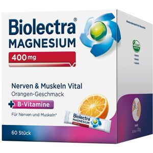 Nahrungsergänzungsmittel sind kein Ersatz für eine ausgewogene und abwechslungsreiche Ernährung und eine gesunde Lebensweise. Biolectra® MAGNESIUM 400 mg Nerven & Muskeln Vital – Für alle die viel vorhaben. Wir leben in einer turbulenten Zeit: Hektik im Privatleben, Druck im Job und dann auch noch ständig dieser Stau – das kann ganzschön an den Nerven zehren. Biolectra Magnesium 400 mg Nerven & Muskeln Vital mit der klugen Kombination von Magnesium und B-Vitaminen leistet hierzu einen sinnvollen Beitrag. Magnesium unterstützt eine normale Muskelfunktion und trägt zu einer normalen Funktion des Nervensystems und der Psyche bei. Die enthaltenen B-Vitamine tragen zu einer normalen Funktion des Nervensystems und des Energiestoffwechsels bei. 2-Phasen-Magnesium Eine weitere Besonderheit von Biolectra® MAGNESIUM 400 mg Nerven & Muskeln Vital ist das Zweifach-Magnesium: es enthält „Sofort-Magnesium“ (als Magnesium-Citrat), das direkt nach der Einnahme freigesetzt wird und dem Körper so schnell zur Resorption zur Verfügung steht, sowie „Depot-Magnesium“ (als Magnesium-Oxid) mit zeitversetzter, verzögerter Verfügbarkeit dank einem speziellen und zum Patent angemeldeten Herstellungsverfahren („Hot-Melt-Coating“). Auf diese Weise ist der Körper über mehrere Stunden mit Magnesium versorgt. Zutaten: 400 mg Magnesium, Vitamin B1, Vitamin B2, Vitamin B6, Vitamin B12. Sonstige Bestandteile: siehe GebrauchsinformationNährwerte: Nährwertangaben Pro Stick & der Referenzmenge* Magnesium 400 mg 107 % Vitamin B1 1,1 mg 100 % Vitamin B2 1,4 mg 100 % Vitamin B6 1,4 mg 100 % Vitamin B12 2,5 μg 100 % *gemäß LebensmittelinformationsverordnungVerzehrempfehlung: 1x täglich den Inhalt eines Sticks verzehren. Die Micro-Pellets direkt auf die Zunge geben und schlucken. Kann bei übermäßigem Verzehr abführend wirken.Hinweis: Nahrungsergänzungsmittel sind kein Ersatz für eine ausgewogene und abwechslungsreiche Ernährung und eine gesunde Lebensweise. *Magnesium unterstützt eine normale Muskelfunktion und trägt zu einer normalen Funktion des Nervensystems und der Psyche bei. Die enthaltenen B-Vitamine tragen zu einer normalen Funktion des Nervensystems und des Energiestoffwechsels bei. Aufbewahrung: Bitte außerhalb der Reichweite von kleinen Kindern aufbewahren und bei Raumtemperatur trocken lagern.Nettofüllmenge: 60 Sticks = 114 g Herstellerdaten: HERMES ARZNEIMITTEL GMBH Georg-Kalb-Straße 5 - 8 82049 Pullach i. Isartal