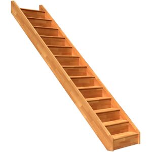 Diese designorientierte Nebentreppe mit geraden, eingestemmten Stufen erhalten Sie wahlweise als offene Treppe (ohne Setzstufen) oder als geschlossene Treppe (mit Setzstufen). Die ausgewählten Hölzer passen zu vielen Einrichtungsstilen. Leicht, hell, zeitlos elegant – die Raumspartreppe DOLLE Paris macht ihrer Namensgeberin alle Ehre. Durch ihr schlankes Erscheinungsbild wird sie zur optimalen Wohnbegleiterin auch in kleinen Räumen. Die Treppe ist in zwei Hauptausführungen erhältlich: mit geradem Lauf sowie mit einer ¼-Wendelung unten. Alle Stufen sind bereits für die Aufnahme von Setzstufen vorgefräst, was der Treppe Flexibilität für eine etwaige spätere Veränderung gibt. DOLLE Paris ist mit Überlast geprüft und hat eine garantierte Tragkraft von bis zu 150 kg. Damit ist sie für eine tägliche Belastung ausgelegt. Eine Anpassung der Treppe an die individuelle Geschosshöhe kann durch Kürzen der Wangen erreicht werden. Beachten Sie unbedingt, dass bei den ¼-gewendelten Ausführungen die Außenwange unbedingt an einer tragenden Wand montiert werden muss! Das Geländer ist rechts oder links, bei geradem Treppenlauf auch beidseitig montierbar. Es kann wahlweise mit Rechteckstäben oder Edelstahlrohren bestellt werden. Die Treppe steht in den Holzarten Buche, Eiche und Fichte zur Auswahl. Für die Hölzer Buche und Eiche besteht auch die Möglichkeit, Wangen und Pfosten in Weiß zu grundieren. Gegen Aufpreis ist die Treppe auch mit Setzstufen oder einem Brüstungsgeländer erhältlich. Baurechtliche Kategorie: Nicht notwendige Treppe Lieferumfang ... Komplettes Montagematerial Einbauanleitung Wichtiger Hinweis Die Treppen sind bauseitig der genauen Geschosshöhe anzupassen!