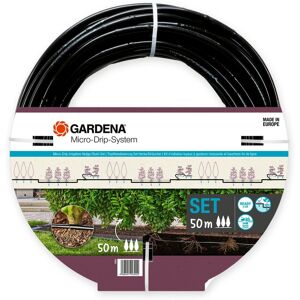 Gardena Tropfbewässerung Set Hecke/Sträucher 50 m Produktnummer: 0692152274 Um Hecken, Büsche, Sträucher oder Vorgartenbepflanzungen zuverlässig und effizient zu bewässern, ist das Tropfbewässerung Set Hecken/Büsche (50 m) von GARDENA optimal geeignet. Alle Bestandteile für eine wassersparende Tropfbewässerung sind im Ready-2-Use-Set enthalten. Die Installation erfolgt einfach in nur wenigen Schritten. Als Erstes wird der Wasserschlauch an das Basisgerät 1000 angeschlossen, das wiederum mit dem 50 m langen Tropfrohr verbunden wird. Das Tropfrohr kann sowohl ober- als auch unterirdisch verlegt werden. Bei der unterirdischen Verlegung zeigt die Labyrinth-Technik mit Wurzelsperre ihre Stärken. Sie sorgt dafür, dass das Rohr nicht verstopft. Die druckkompensierenden Tropfer befinden sich alle 30 cm im Tropfrohr und geben konstant 1,6 Liter Wasser pro Stunde ab - selbst bei Höhenunterschieden. Durch die separat erhältlichen 13-mm-Verbinder mit patentierter Quick &; Easy Verbindungstechnik ist jederzeit eine flexible Neugestaltung und Erweiterung des Micro-Drip-Systems möglich. Die MDS-Komponenten sind wiederverwendbar und damit nachhaltig. Mit weiteren ober- und unterirdischen Tropfrohren oder einer Bewässerungssteuerung für eine noch komfortablere und zeitsparendere automatische Bewässerung kann das Set erweitert werden. 50 m Pflanzreihe zur ober- und unterirdischen Verlegung Basisgerät 1000 50 m Tropfrohr 13 mm (1/2") 1 Verschlussstopfen 13 mm (1/2") Wasserabgabe pro Tropfen: 1,6 l/h je 30 cm Herstellerinformationen: GARDENA Deutschland GmbH Hans-Lorenser-Straße 40 89079 Ulm, Deutschland Website: www.gardena.com Herstellernr. 13501-20