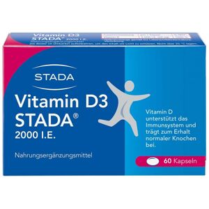 Anwendungsgebiet von Vitamin D3 STADA 2000 internationale Einheiten TablettenVitamin D3 STADA 2000 internationale Einheiten Tabletten zur Unterstützung des Immunsystems und gesunder Knochen*, ohne Gluten & Lactose. * Vitamin D trägt zu einer normalen Funktion des Immunsystems und zur Erhaltung normaler Knochen bei. VITAMIN D3, DAS SONNENVITAMIN ZUR UNTERSTÜTZUNG DES IMMUNSYSTEMS & GESUNDER KNOCHEN* Wenn von Vitamin D gesprochen wird, ist in den meisten Fällen Vitamin D3 gemeint. Vitamin D3 ist einzigartig, da es in der Haut mit Hilfe von Sonnenlicht gebildet werden kann. Deshalb wird es auch häufig „das Sonnenvitamin“ genannt. Vitamin D3 kann auch mit der Nahrung oder Nahrungsergänzungsmitteln, wie z. B. Vitamin D3 STADA® 2000 I.E., eingenommen werden. Vitamin D ist bei verschiedenen wichtigen Prozessen im Körper beteiligt. Zu den wichtigsten Aufgaben zählen: a) die normale Funktion des Immunsystems b) der Erhalt normaler Knochen c) die Erhaltung der Zähne und d) die normale Aufnahme und Verwertung von Calcium Warum kann es sinnvoll sein, ein Nahrungsergänzungsmittel einzunehmen? Jeder zweite Erwachsene in Deutschland ist schlecht mit Vitamin D versorgt.** Über eine ausgewogene Ernährung kann man versuchen, eine Vitamin-D-Unterversorgung auszugleichen – dies ist jedoch schwierig. Wenn man 1000 I.E. Vitamin D3 am Tag über die Nahrung aufnehmen möchte, müsste man z. B. 2 kg Goudakäse (45 % Fett i. Tr.) oder 15 Eier essen.*** Daher kann es sinnvoll sein, eine Nahrungsergänzung, wie das Vitamin D3 STADA®, auszuwählen. Vitamin D3 STADA® ist hoch dosiert mit 2000 I.E. angenehm in der Einnahme mit nur einer kleinen, leicht schluckbaren Weichkapsel pro Tag frei von Gluten, Lactose und Inhaltsstoffen vom Schwein Was kann zu einer Unterversorgung mit Vitamin D führen? 1.Geringe Sonneneins