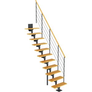 Die Mittelholmtreppe DOLLE Boston punktet mit 70 cm breiten Stufen aus Buche oder Eiche. Damit schafft sie damit einen sehr bequemen Auftritt auch auf wenig Raum. Die Unterkonstruktion ist in 2 Farben erhältlich. Durch ihre modulare Konstruktion schafft sie damit einen sehr bequemen Auftritt auch auf wenig Raum. Sie ist erhältlich mit einer Unterkonstruktion in Weiß (RAL 9016) oder Anthrazit (RAL 7016). Besonders der Kontrast zwischen Buchestufen und dunklem Metall liegt im Einrichtungstrend. Die Treppe wird mit Geländer geliefert. Dieses besteht aus einem Holzhandlauf, 4 Pfosten und mitlaufenden Edelstahlstäbe. DOLLE Boston erreicht mit 11 Stufen und einer maximalen Steigungshöhe von 25 cm eine Geschosshöhe von 300 cm. Vorteile... 70 cm breite Stufen Unterkonstruktion in 2 Farben (RAL 9016 oder RAL 7016) Modularer Aufbau Geländer inklusive Passendes Brüstungsgeländer Lieferumfang ... Einseitiges Steiggeländer Komplettes Montagematerial Einbauanleitung Baurechtliche Kategorie: Nicht notwendige Treppe