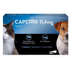 Anwendungsgebiet von Capstar Tabletten gegen Flöhe für Hunde von 11 bis 57 kg Capstar Tabletten für große Hunde bis 57 kg – die schnelle Hilfe bei FlohbefallFlöhe gehören zu den häufigsten und hartnäckigsten Parasiten bei Hunden und Katzen. Viele Tiere werden mindestens einmal in Ihrem Leben von diesen lästigen Insekten befallen – meistens durch Kontakt mit anderen befallenen Tieren. Das Tückische: Flöhe vermehren sich bei optimalen Bedingungen besonders rasch und so kann nach kurzer Zeit eine richtige Flohplage entstehen. Ist ein Floh auf dem Tier entdeckt, ist das meistens nur die Spitze des Eisberges, denn nach der Blutmahlzeit beginnen Flöhe mit der Eiablage. Die Eier und daraus schlüpfenden Larven befinden sich dann in der Umgebung des Tieres: im Körbchen, unter Möbeln oder im Teppich.Capstar Tabletten für große Hunde mit dem Wirkstoff Nitenpyram wirken direkt und schnell gegen erwachsene Flöhe bei Hunden. Der rasche Wirkeintritt beginnt bereits 15 bis 30 Minuten nach Gabe und sorgt dafür, dass die auf dem Hund befindlichen Flöhe abgetötet werden. Nach 6 Stunden sind nahezu alle Flöhe auf dem Hund abgetötet. Dadurch kann verhindert werden, dass erwachsene Flöhe Blut saugen und Eier legen können, die sich dann in der weiteren Umgebung verteilen. Dabei ist Capstar in der Anwendung besonders einfach: Nur eine Tablette reicht zur Behandlung eines akuten Flohbefalls eines großen Hundes von 11 kg bis 57 kg aus.Capstar ist gut verträglich und kann auch an säugende Hündinnen gefüttert werden. Auch Welpen ab einem Alter von 4 Wochen und 11 kg Körpergewicht können so von lästigem Flohbefall befreit werden. Für wen ist Capstar das richtige Produkt?• wenn Sie Flöhe an Ihrem Tier entdeckt haben und rasch handeln wollen, bevor Sie ein Langzeit-Präparat anwenden• wenn Sie Ihr Tier aus einer Hundepension/Ferienbetreuung abholen und sichergehen wollen, sich keine Flöhe mit nach Hause zu nehmen• wenn für Sie eine